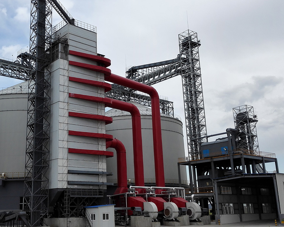 順流烘干機多為漏斗式進氣道與角狀盒排氣道相結(jié)合的塔式結(jié)構(gòu),它不同于混流烘干機由一個主風(fēng)管供熱風(fēng),而是由多個(級)熱風(fēng)管供給不同或部分相同的熱風(fēng)。